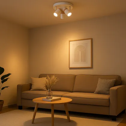 Sfeerverlichting in de woonkamer: Plaats boven de zithoek om een warme, uitnodigende sfeer te creëren.