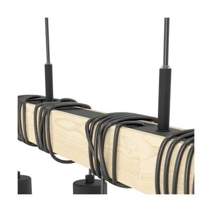 Beschrijving Eglo Hanglamp Townshend 5 Staal Hout Zwart | IP20 - Geschikt voor 4x E27