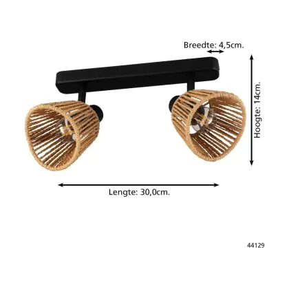 Eglo Plafondlamp Keelby Staal Zwart | IP20 - Geschikt voor 2x E14