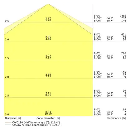 ![]() De kleurcode is een combinatie van de kleurweergave (CRI) en lichtkleur (Kelvin). Het eerste getal is de kleurweergave (1 = zeer slechte kleurweergave, 9 = maximale kleurechtheid). Het tweede en derde cijfer betreft de lichtkleur. Een lamp met kleurcode 830 heeft bijvoorbeeld een goede kleurweergave en straalt een warm wit licht uit (3000K), waar een lamp met de kleurcode 940 een uitstekende CRI heeft en een koel wit licht (4000K) uitstraalt. |