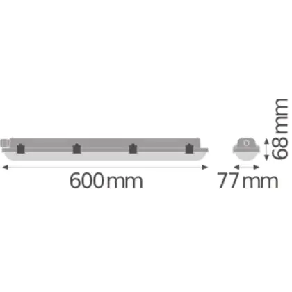Het Ledvance Waterdichte LED TL armatuur vervangt armaturen die gebruik maken van een conventionele 18W TL buis. Door het gebruik van LED kun je de helft van je energieverbruik besparen! Dit maakt de LED batten van 60cm een goede investering voor de toekomst. Verder behoort dit LED armatuur tot de “Damp Proof Value” serie. Deze zijn speciaal ontwikkeld met een hoge IP waarde van IP65 wat het volledig water- en stofdicht maakt en hierdoor ook geschikt zijn voor gebruik in vochtige ruimtes.