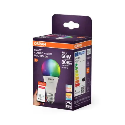 Beschrijving Osram Smart+ Classic LED E27 Peer Mat Multicolour RGBW 9W 806lm - 827-865 Afstembaar Wit | Zigbee Dimbaar - Vervangt 60W