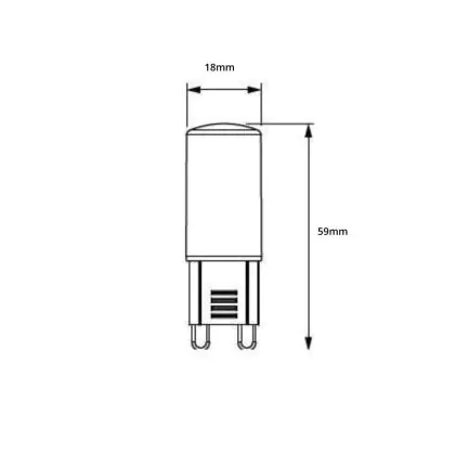 Om tot de meest geschikte G9 LED steeklamp te komen, is het handig om een aantal dingen te checken. Te beginnen met de kleurtemperatuur. Die is bij dit product: 2700K - Zeer Warm Wit. Wil je liever een andere kleurtemperatuur? Gebruik dan het filter 'Lichtkleur' aan de linkerkant van onze G9 LED Lampen pagina. Ook raden we aan om altijd de afmetingen van dit LED product te vergelijken met je huidige G9 lamp. De diameter is: 18mm en de hoogte is: 59mm.