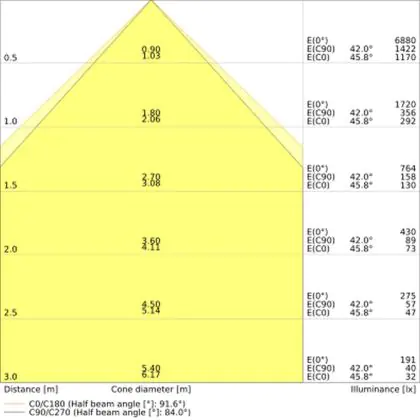 De lichtopbrengst (Lumen), geeft weer hoe krachtig het uitgestraalde licht is. Dit is belangrijk om te weten om de juiste sfeer te creëren. 0 tot 400 Lumen is bij uitstek geschikt voor accent- of sfeerverlichting. Een hoger aantal Lumen is, afhankelijk van de grootte van de ruimte, beter geschikt als ondersteunende- of basisverlichting. Heb je plafonds hoger dan 4 meter, dan is een lichtopbrengst van minimaal 8000lm aan te raden indien heldere verliching gewenst is (vb. in werkomgevingen).